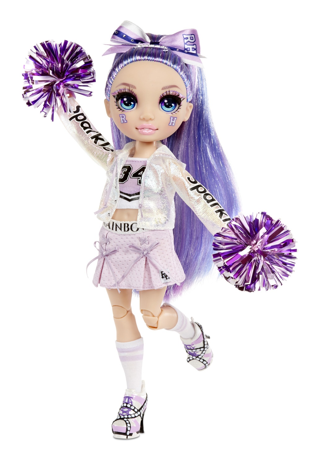 6 originálních módních panenek nyní přichází jako zábavné a báječné roztleskávačky s pompony. Každá panenka Cheer Doll s dlouhými česatelnými vlasy a krásnými řasami je oblečena ve svých barvách, což podtrhuje její jedinečný styl. A když dáte všechny panenky dohromady, stanou se jedním fandícím týmem Rainbow High, který je připraven fandit svému týmu ve velké hře.
