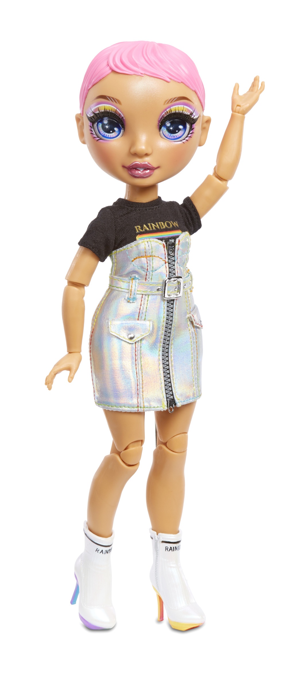 V Módním salónu najdeš exkluzivní Fashion panenku, které můžeš vybrat stylový duhový outfit podle vlastní fantazie. V balení najdeš více než 10 módních kousků a 4 páry bot, pomocí kterých vytvoříš více než 300 fashion kombinací. Oblečky pověsíš na luxusní zlatou šatní tyč. Změň panence i účes, balení obsahuje 2 paruky.