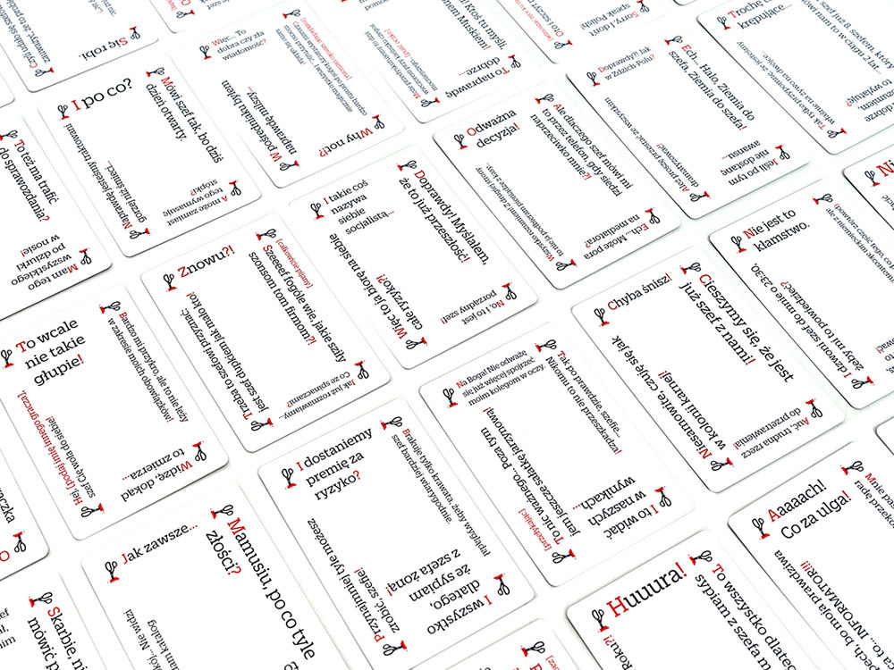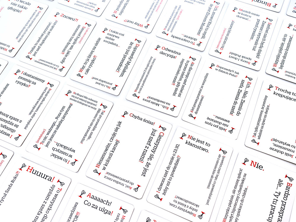 - V každém kole se jedna osoba stane šéfem a ostatní hráči jsou podřízení.- Šéf si vezme tolik karet narážek, kolik má podřízených.- Každý podřízený obdrží jednu kartu odvetného útoku. Hra: