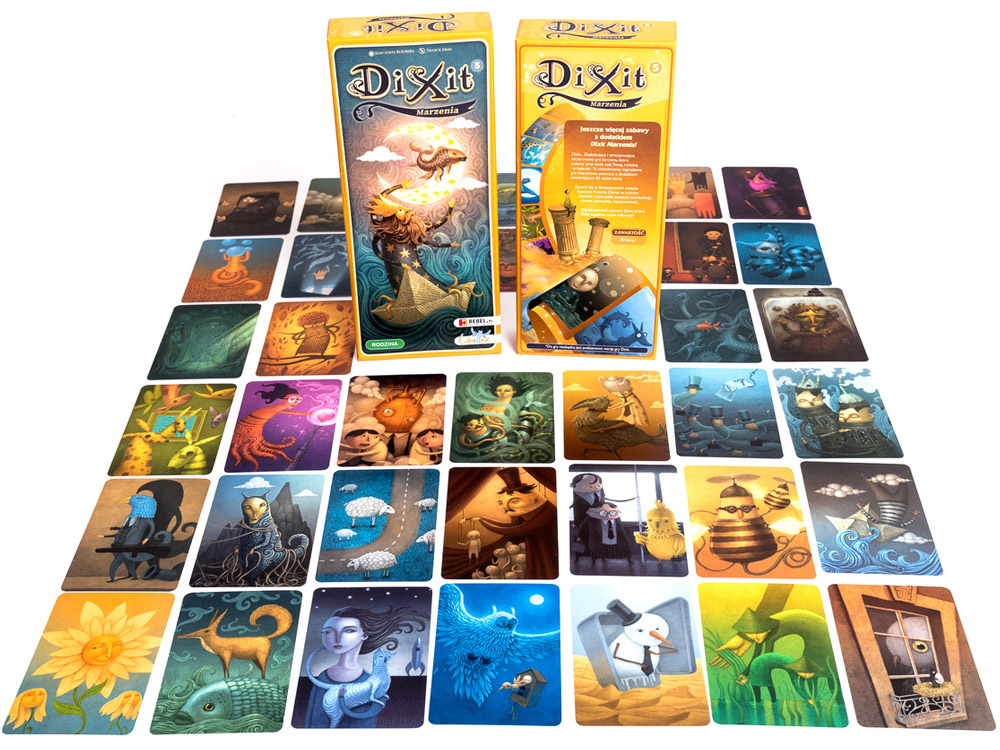 Dixit 5: Sny - to výjimečné rozšíření obsahující 84 nové, neobyčejné karty ilustrované Franckem Dionem – francouzským ilustrátorem a režisérem animovaných filmů. Každá karta je malé umělecké dílo, plné symboliky a mnohoznačnosti, které podněcují představivost hráčů.