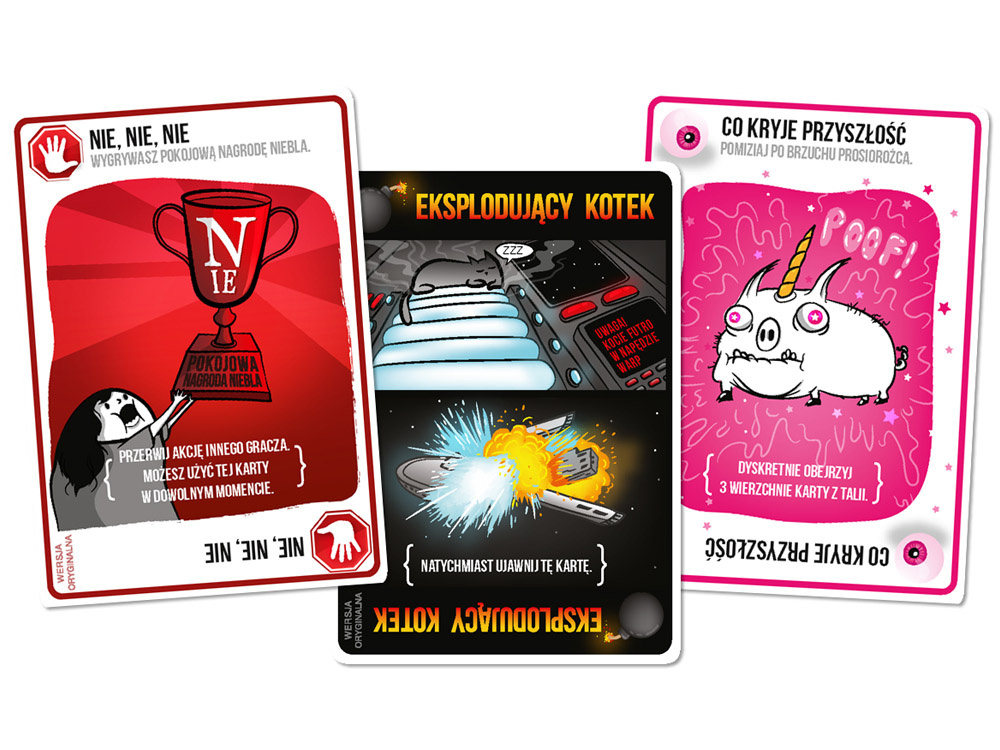 Hodně smíchu a emocí: Hra je plná nečekaných zvratů, které způsobují spoustu emocí. Okamžik, kdy někdo vytáhne explodující koťátko, vždy vyvolá salvy smíchu. Navíc speciální karty umožňují chytře obelstít osud, což činí hru plnou napětí.