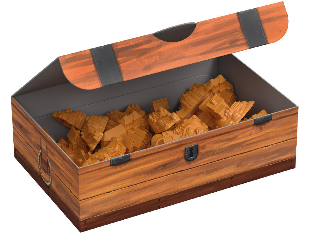 - 19 polí terénu- 6 částí rámu- 18 žetonů s čísly- 95 karet surovin- 25 karet rozvoje- 6 karet pomoci- 96 figurek- 1 zloděj- 2 stojánky na karty- 2 kostky- 1 návod- 1 almanach Počet hráčů: 3-4 osoby