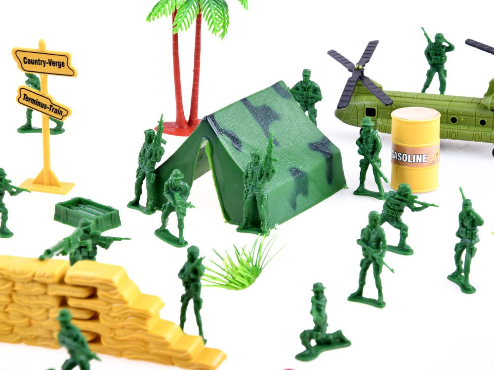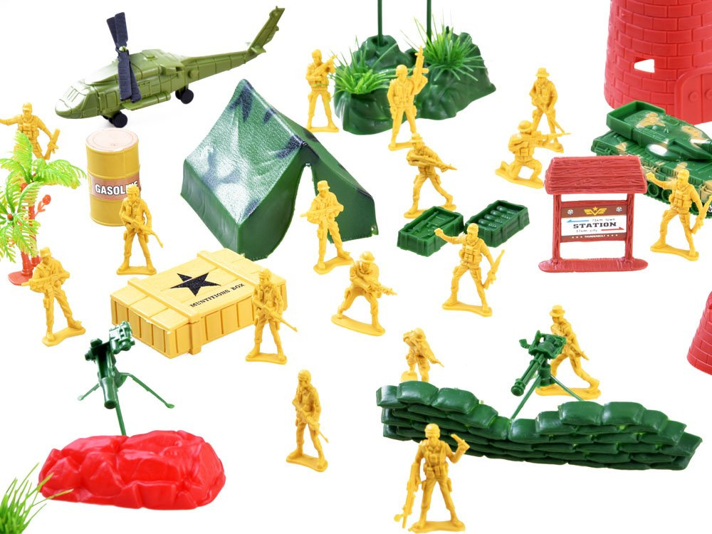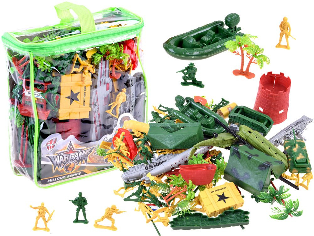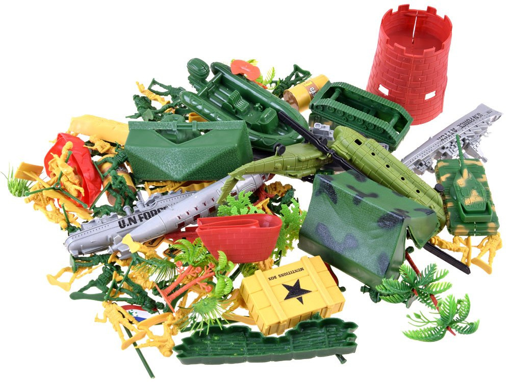 Silně rozvinutá sada vojáků pro hraní na vojáky, vojenské aktivity, plánování průjezdu apod. činnosti související s vojenstvím. Plastové figurky vojáků a celý bojový arzenál zajistí každému malému chlapci spoustu kreativní zábavy.