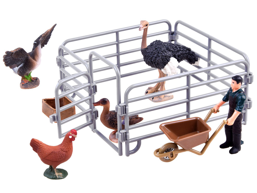 Sada obsahuje pštrosa a slepici, husu a kachnu. Stejně jako na skutečné farmě na vše dohlíží postava farmáře.