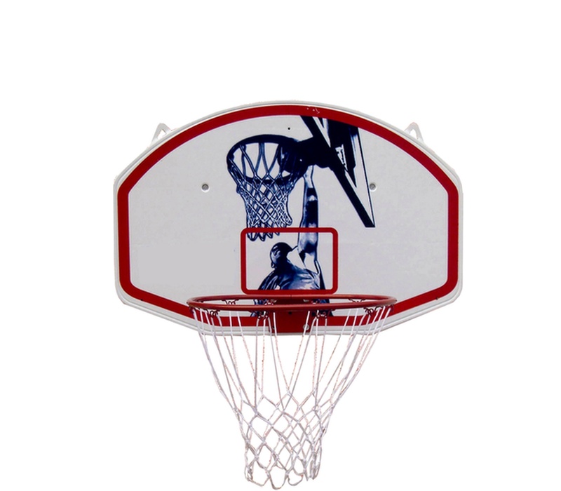Deska koše je vyrobená sendvičovou technologií z pevného plastu tloušťky 30 mm, se zadními žebry a zpevňujícími kovovými tyčemi tvaru V pro bezpečné a pevné upevnění na zdi.